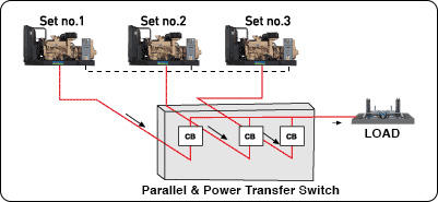 Synchronization System Paralleling is the synchronous operation of two or more generator sets connected together on a common bus in order to provide power to common loads as shown in figures. Electrical power generation is ranged from low voltage 400V to medium (high) voltage 13.8KV. Depending on the purpose of Power Plant, diesel generators may be operated in various configurations: